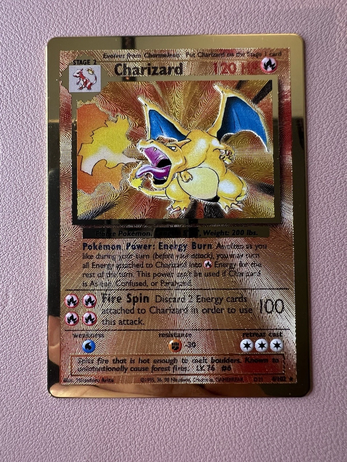 🔑 SEO Keywords Integrated: Gold Metal Charizard Celebrations 25th Anniversary 4/102, Ultra Premium Collection Charizard metal card, Ungraded Lightly Played Charizard gold card, Pokémon TCG Charizard 25th Anniversary Classic Collection.